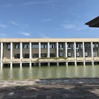 一言コメント:アサリ池の上に建つ図書館。貸出し返却の窓口は広く作られている。必要な資料もコンパクトにまとまったちょうどいい図書館です。