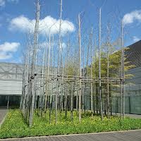 一言コメント:写真は中庭。展示図書は「展覧会関連資料 ルーブル展 マグリット展」「教育普及関連図書」