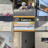 一言コメント:展示は、映画館X豊島区CinemaROSA。新しい季節はなぜか切ないJAZZ特集。どこへ行こう。ねこたち。なやみをきくよ。区教育委員会庶務課。始めてみよう春からの習い事。写真は隣接公園自動車事故慰霊碑
