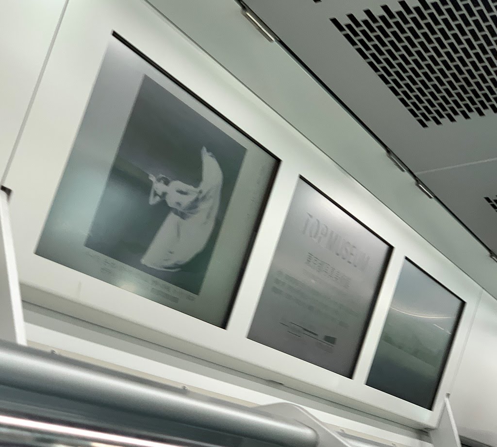 一言コメント:展示図書は「本橋成一とロベール・ドアノー 交差する物語」「TOPコレクション 何が見える?「覗き見る」まなざしの系譜」「風景論以後」。写真は東急線で見かけた宣伝広告。