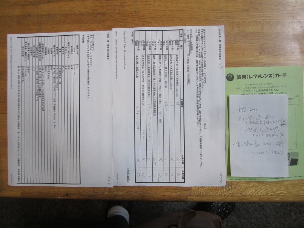 2012/07/14来館 14時50~17時48分在館 自宅から1時間33分・27.5km 温泉・銭湯についてレファレンス