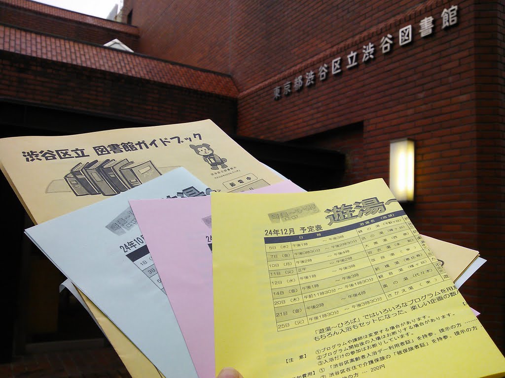2012/10/17初めて来館しました。12時51分~15時35分まで閲覧・銭湯の遊湯~ひろばのチラシが置いてありました。♪ヽ(´▽`)/