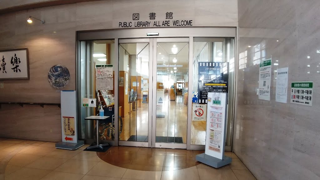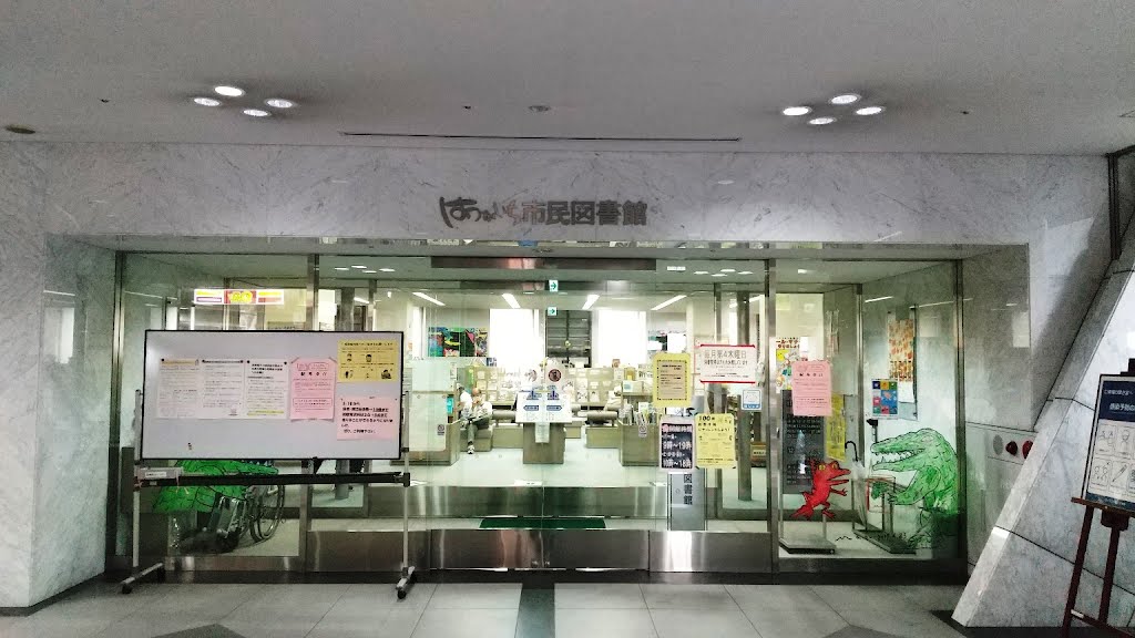 市庁舎東隣りの市民センター1階にあるきれいな図書館。