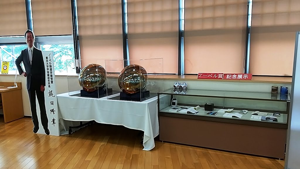 スーパーカミオカンデの地元だけに梶田先生や光電子倍増管がお出迎えしてくれます。