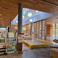 木曜午後に来館。絵のある図書館。新しそうだけど木の温もりも感じられる。人はいるけど静か。BGMも落ち着く。「おじいちゃんとパン」「ATOKATA」読みました。